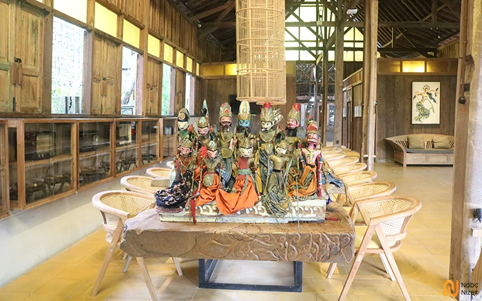 Uniknya lagi untuk menuju lobby sobat akan memasuki lorong yang terbuat dari kayu-kayu tua. Oh iya lobby disini disebut kantor desa ya, di dalam kantor desa ini terdapat banyak seni ukiran, wayang golek dan ada juga hiasan teko-teko tradisional, gerabah dan telepon jadul Instagramable banget deh pokoknya. Selain itu kamu juga bisa duduk-duduk santai karena kantor desa ini juga berfungsi sebagai area tunggu/lounge.